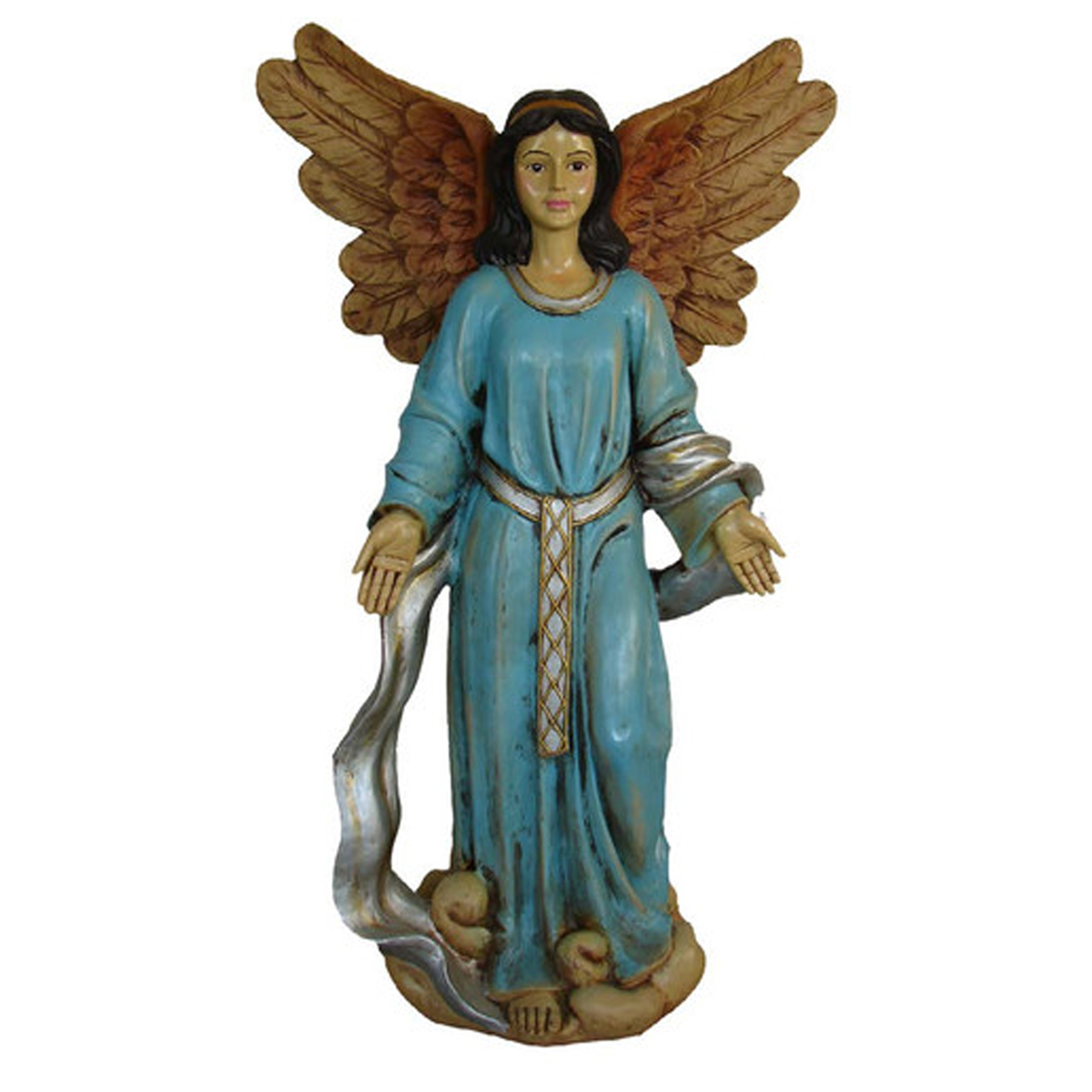 The perfect addition to a Nativity scene, this life-size Angel is made of fiberglass and painted. Well-suited for shopping malls, big box stores, window displays, hotel lobbies, event centers, city parks, courtyards, thoroughfares, churches, commercial Christmas displays, and residential displays. Dimensions are  66" x 40.5" x 22 inch. Weight is 109 lbs.