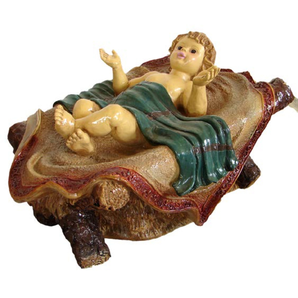 The perfect addition to a Nativity scene, this life-size Baby Jesus is made of fiberglass and white in color. Well-suited for shopping malls, big box stores, window displays, hotel lobbies, event centers, city parks, courtyards, thoroughfares, churches, commercial Christmas displays, and residential displays. The Christmas display's dimensions are  13.75" x 24" x 16.5 inch. Weight is 32 lbs.