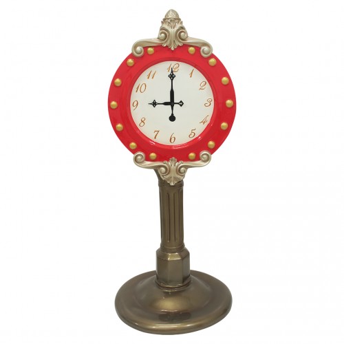 The perfect complement to a Christmas display, Santa's clock is gold and red in color and measures L: 24" W: 24" H: 62 inch. Weight is 29.1 lbs. Well-suited for shopping malls, big box stores, window displays, hotel lobbies, event centers, city parks, courtyards, thoroughfares, churches, commercial Christmas displays, and residential displays.