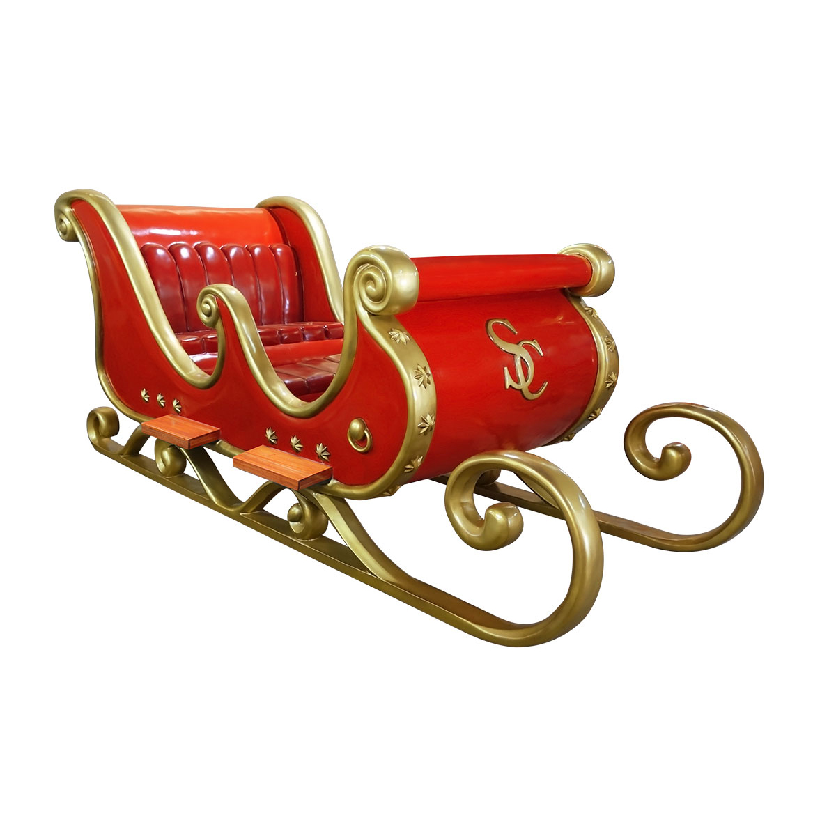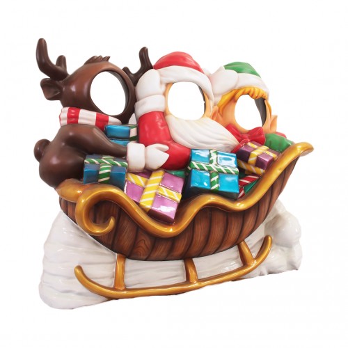 Family sized and perfect for photo ops, this Santa's sleigh measures 4.4' x 5' x 9.5'. An instant draw for customers and guests alike, the sleigh is perfect for shopping malls, big box stores, window displays, hotel lobbies, event centers, city parks, courtyards, thoroughfares, churches, commercial Christmas displays, and residential displays.