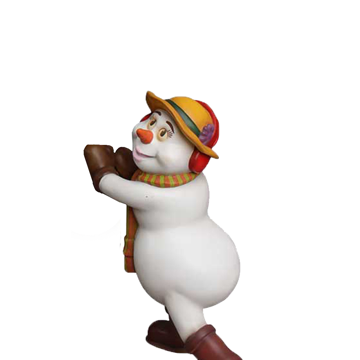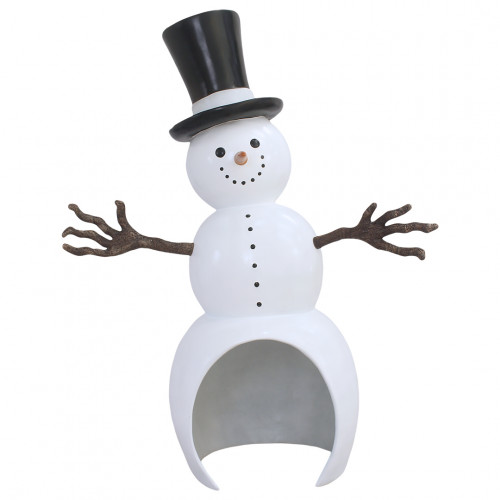 An excellent addition to any Christmas display, this snowman measures 34 x 12 x 26. Display is painted and made from fiberglass. Perfect for shopping malls, big box stores, window displays, hotel lobbies, event centers, city parks, courtyards, thoroughfares, churches, commercial Christmas displays, and residential displays.