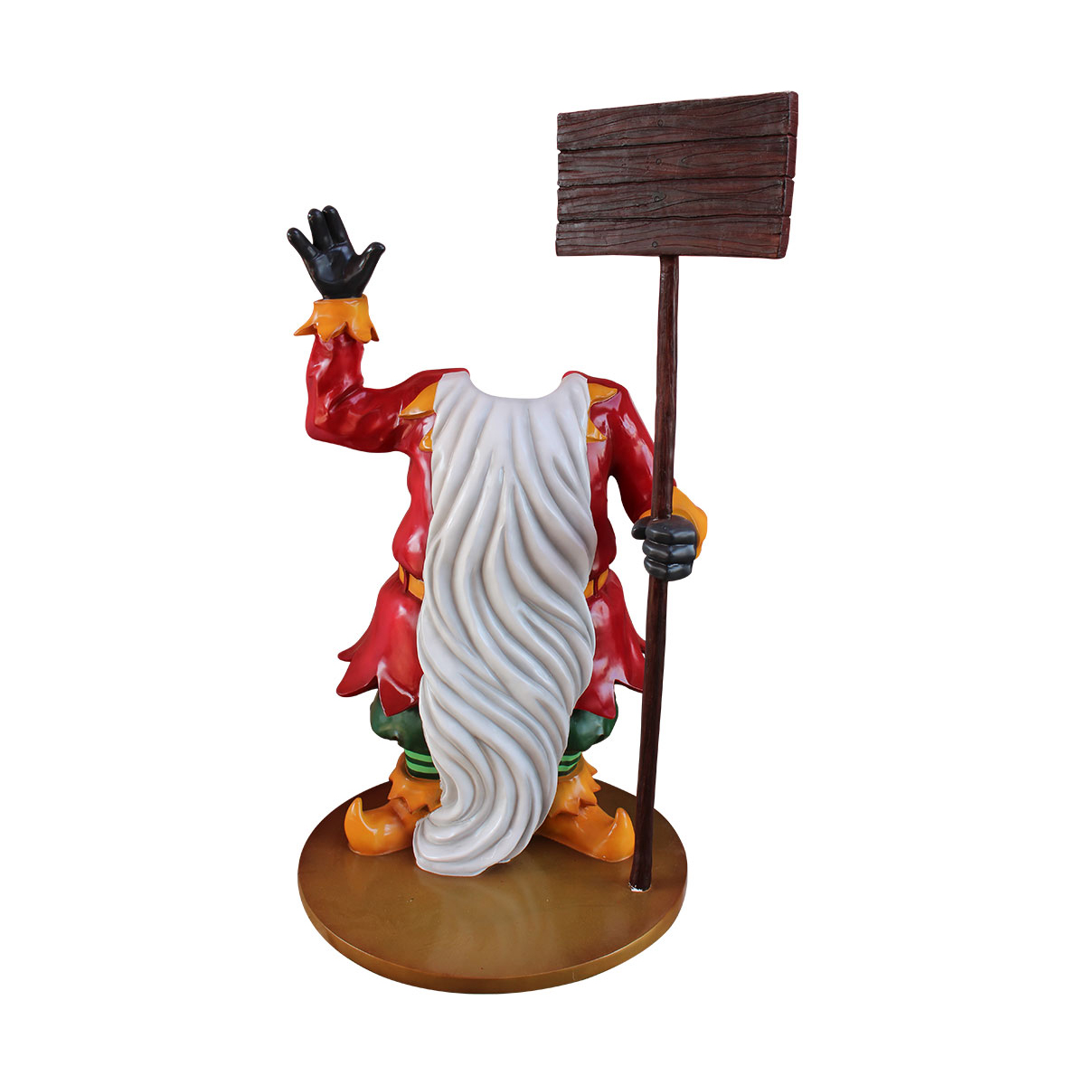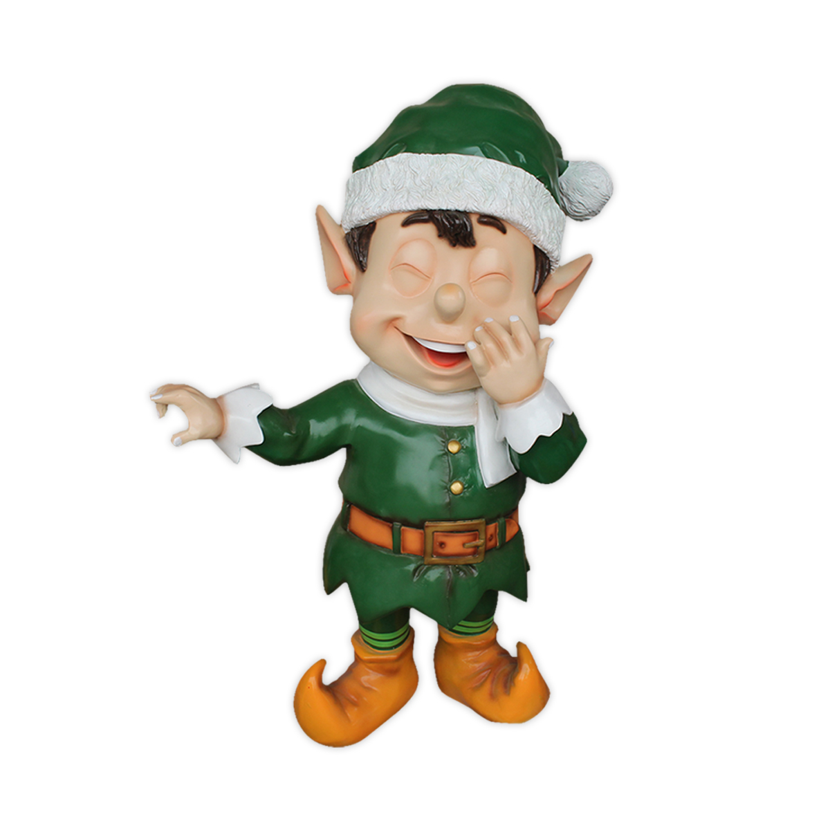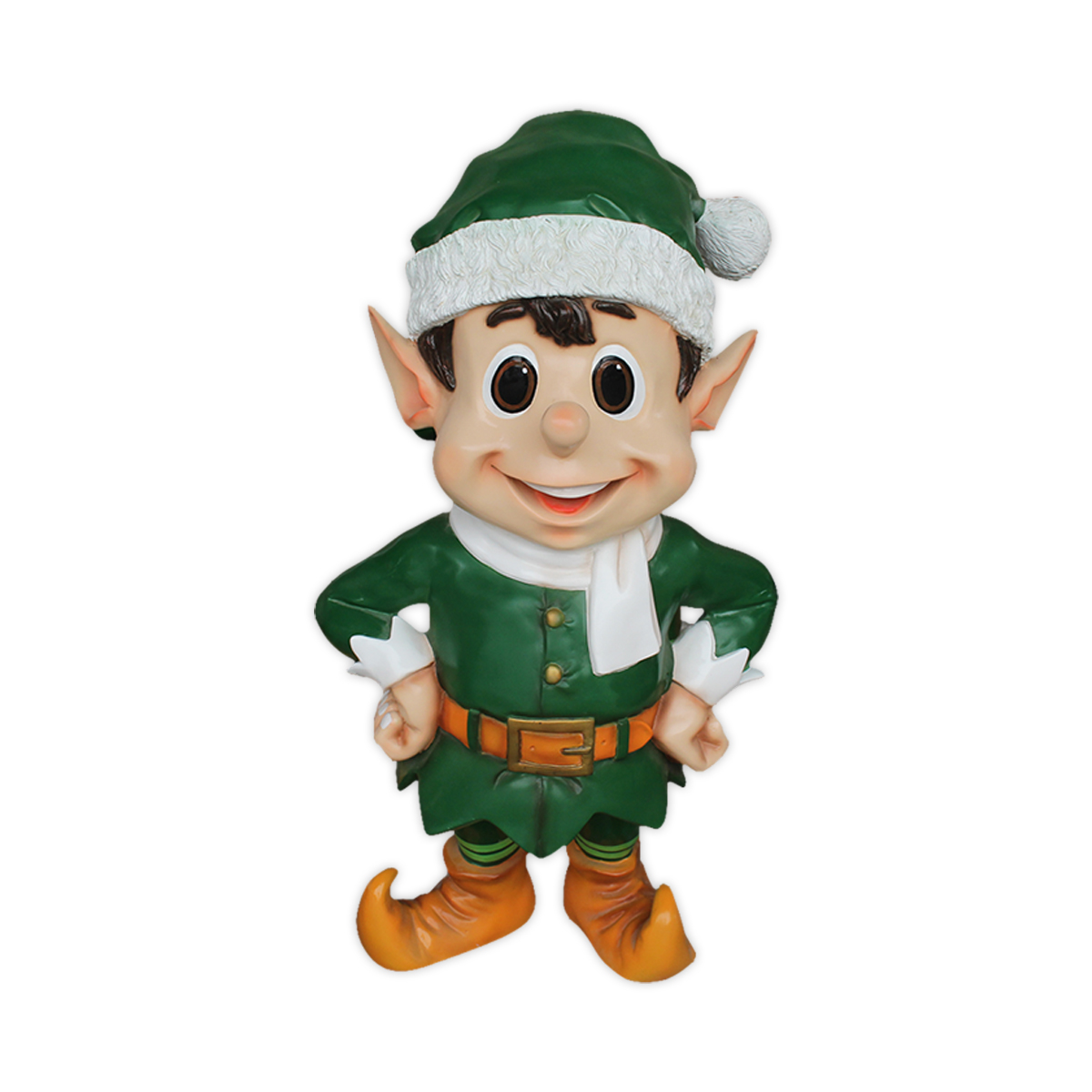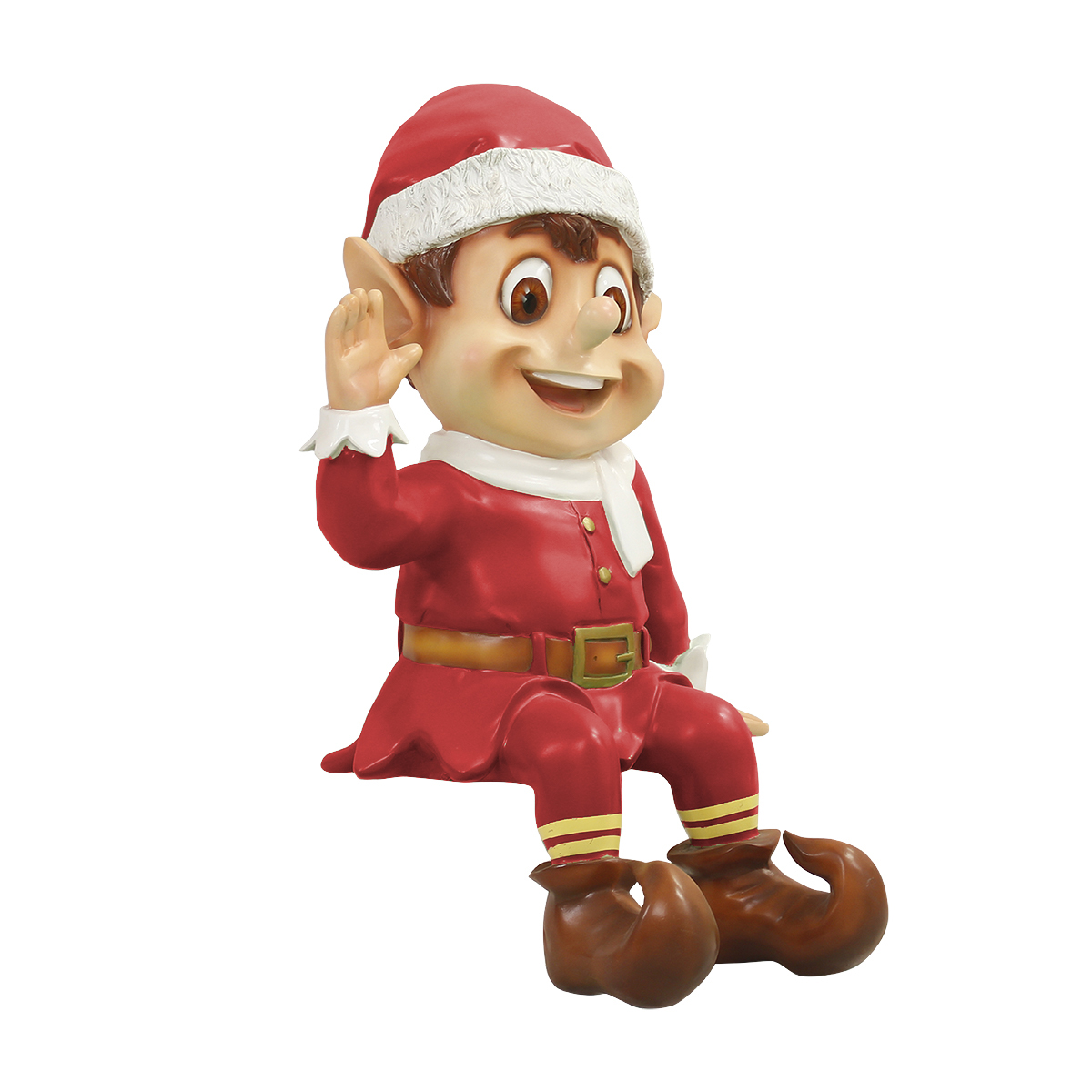 What better Christmas photo-op than to have your picture taken with a life-size Christmas elf? Perfect for shopping malls, big box stores, window displays, hotel lobbies, event centers, city parks, courtyards, thoroughfares, churches, commercial Christmas displays, and residential displays, this Christmas elf photo-op has the following dimension specs: 63 x 41 x 34. Made of fiberglass and painted.