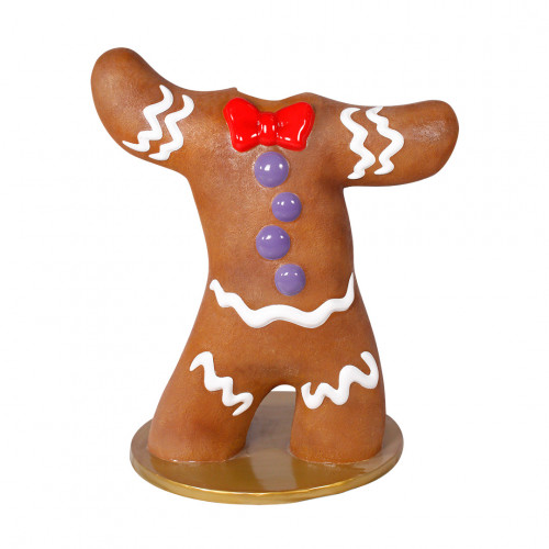 What better Christmas photo-op than to have your picture taken with a life-size Christmas gingerbread man? Perfect for shopping malls, big box stores, window displays, hotel lobbies, event centers, city parks, courtyards, thoroughfares, churches, commercial Christmas displays, and residential displays, this Christmas gingerbread man photo-op has the following dimension specs: L: 48" W: 38" H: 60", 78.1 lbs. Made of fiberglass and painted.