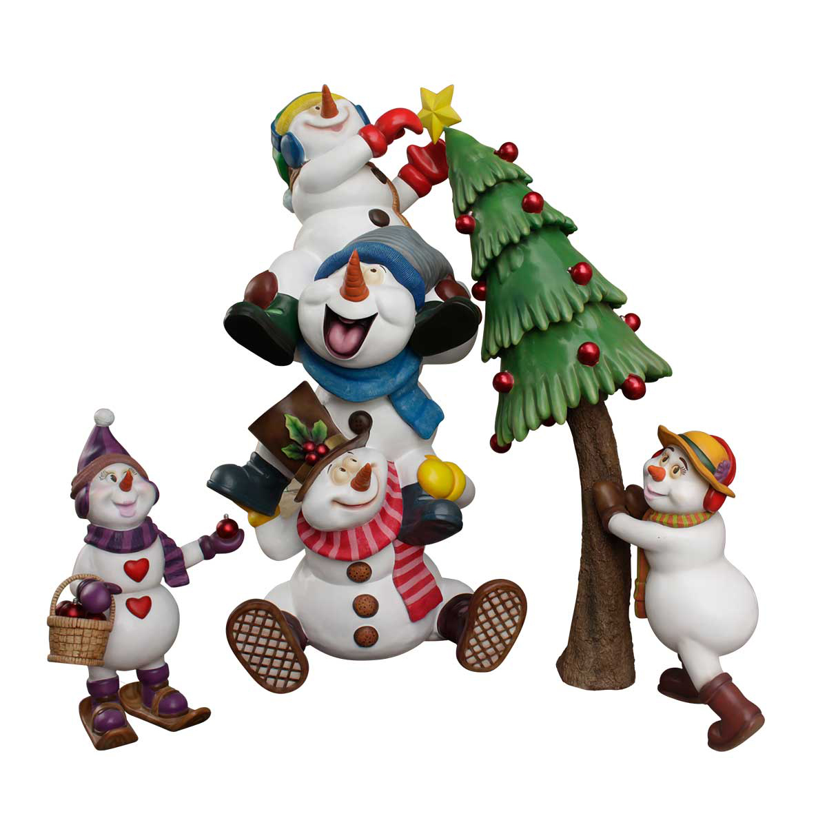 Christmas is not Christmas without a snowman display! This seasonal creation features a group of snowmen frolicking in the way that cheerful snowmen do. Perfect for shopping malls, big box stores, window displays, hotel lobbies, event centers, city parks, courtyards, thoroughfares, churches, commercial Christmas displays, and residential displays.