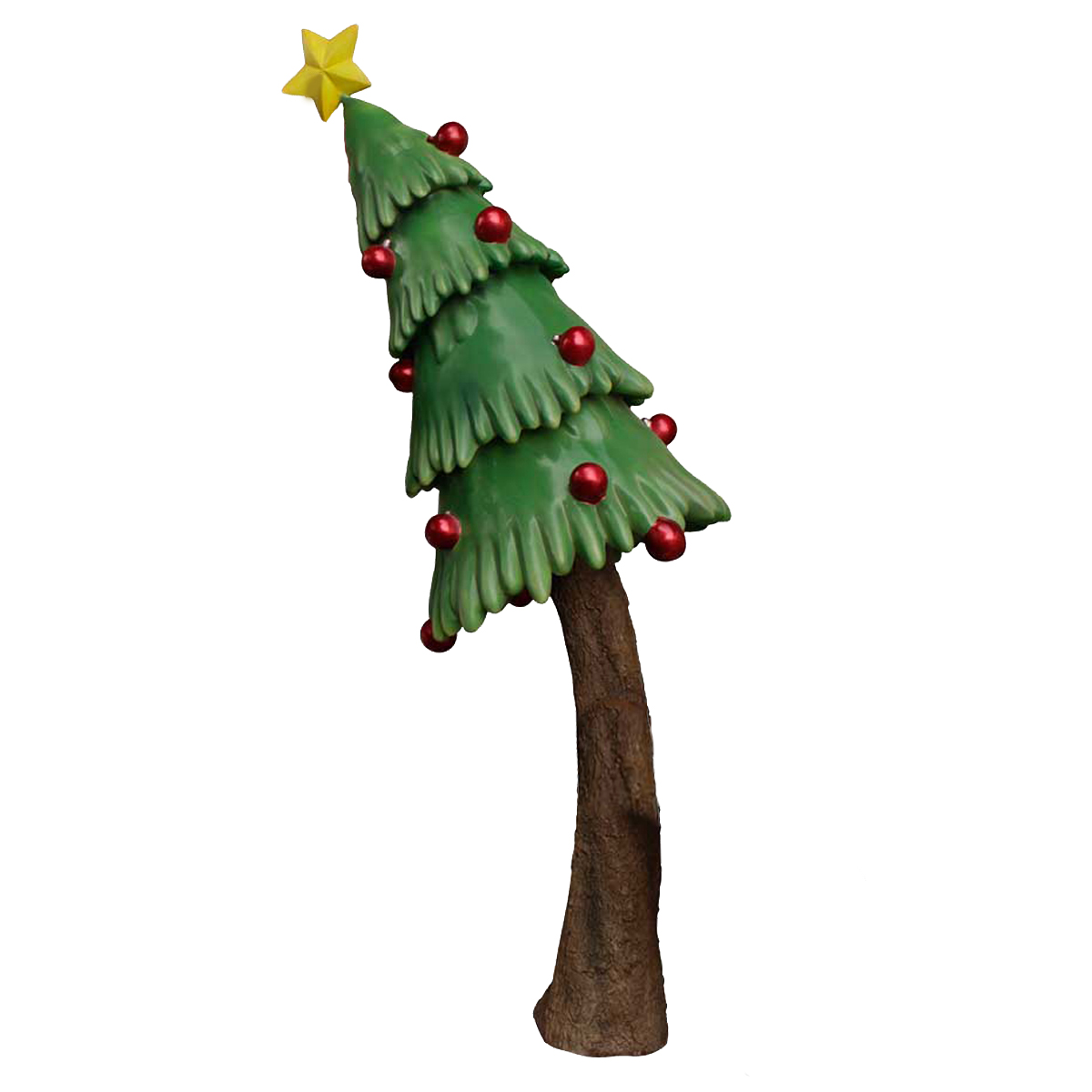 An excellent addition to a Christmas display, this leaning Christmas tree adds a fun, colorful element to any decor. Well-suited for shopping malls, big box stores, window displays, hotel lobbies, event centers, city parks, courtyards, thoroughfares, churches, commercial Christmas displays, and residential displays. Dimensions are 72 x 39 x 24.