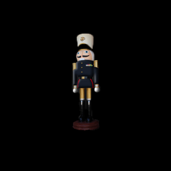 Larger than life and a stunning rendition of an instant Christmas classic, this 5.9ft tall military nutcracker display would look great standing next to doors and entryways. Perfect for shopping malls, big box stores, window displays, hotel lobbies, event centers, city parks, courtyards, thoroughfares, churches, commercial Christmas displays, and residential displays. Marine model.