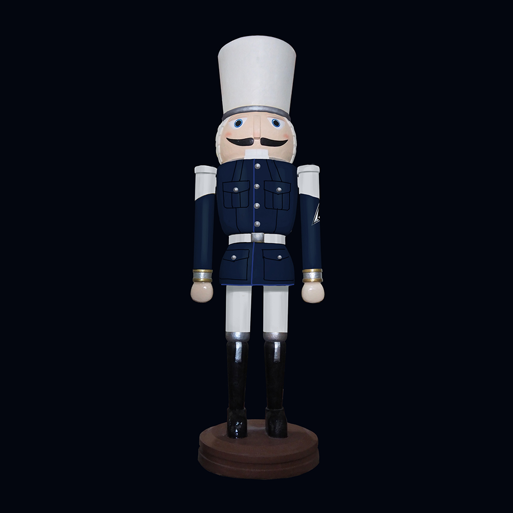 Larger than life and a stunning rendition of an instant Christmas classic, this 9ft tall military nutcracker display would look great standing next to doors and entryways. Perfect for shopping malls, big box stores, window displays, hotel lobbies, event centers, city parks, courtyards, thoroughfares, churches, commercial Christmas displays, and residential displays. Navy model.