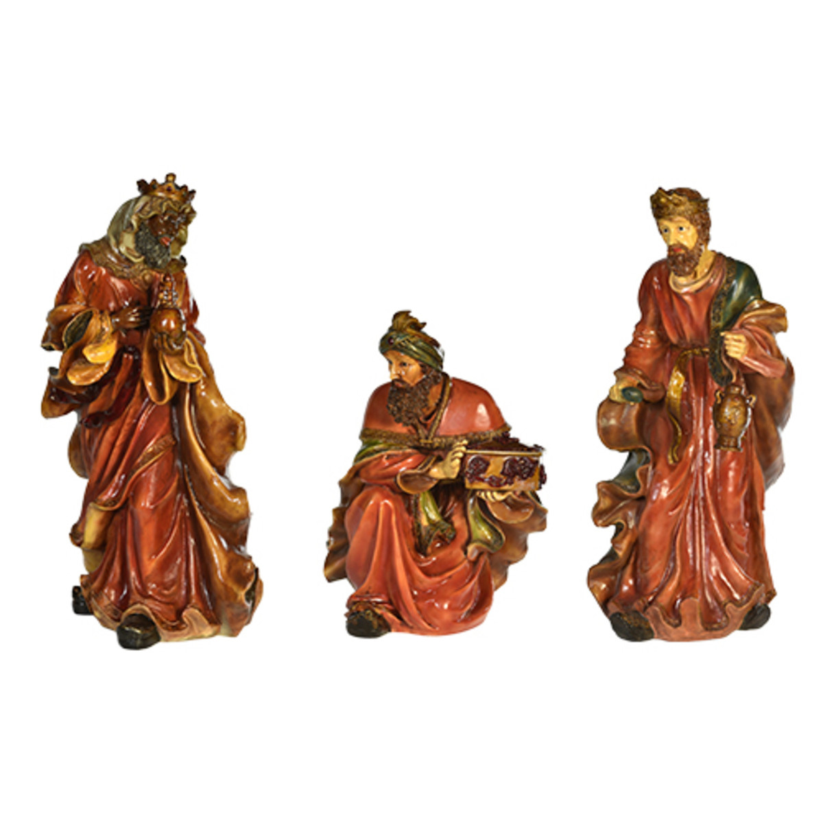 The perfect addition to a Nativity scene, the Three Kings are made of fiberglass and painted. Well-suited for shopping malls, big box stores, window displays, hotel lobbies, event centers, city parks, courtyards, thoroughfares, churches, commercial Christmas displays, and residential displays.
