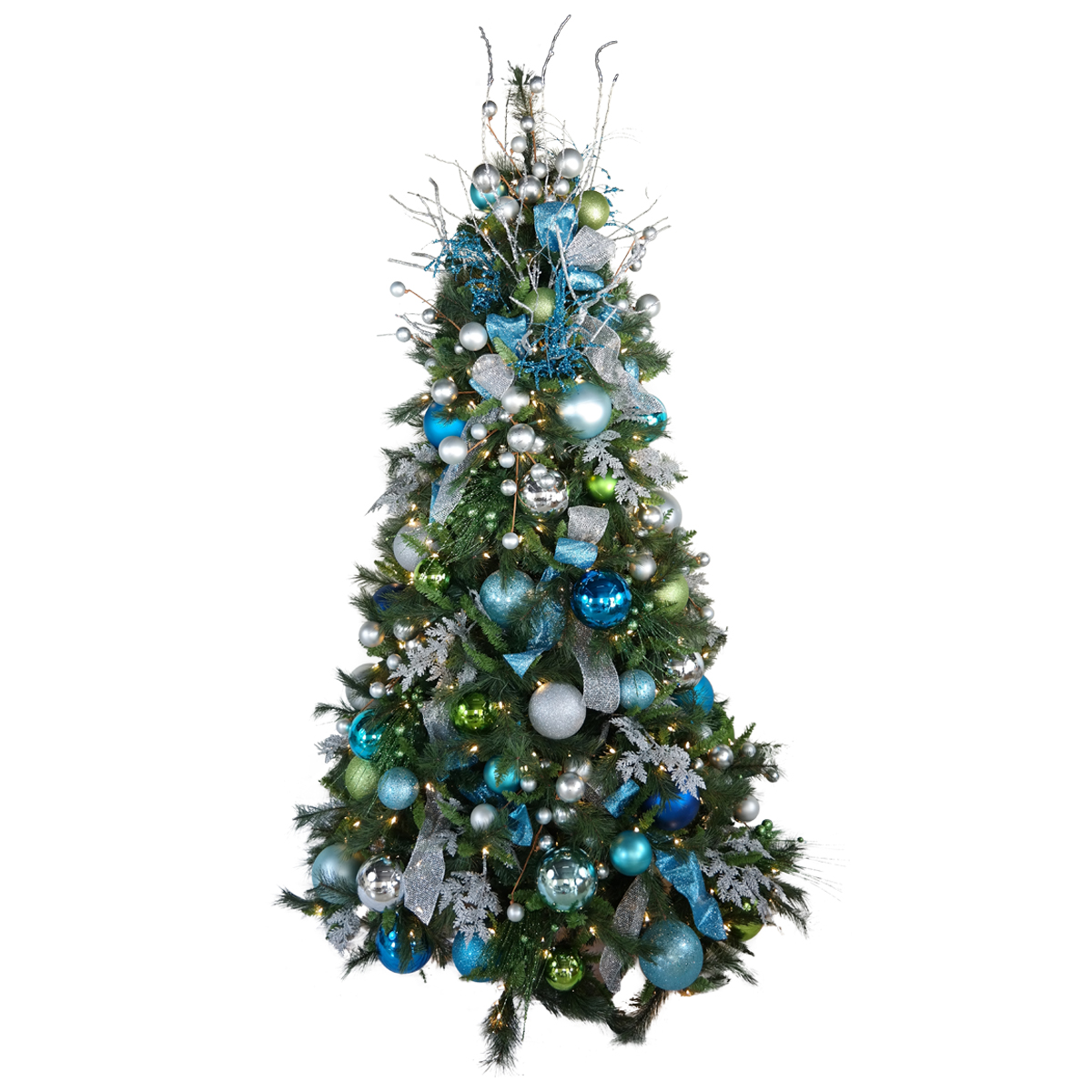 From the Alaskan Deluxe collection, this Christmas tree is 14ft tall and features multi-LED lights and a natural, wild look. 12ft tall and 6ft in diameter at the base with 2,200 individual LED mini-bulbs, this tree is truly an Alaskan gem and perfect for both commercial and residential applications.
