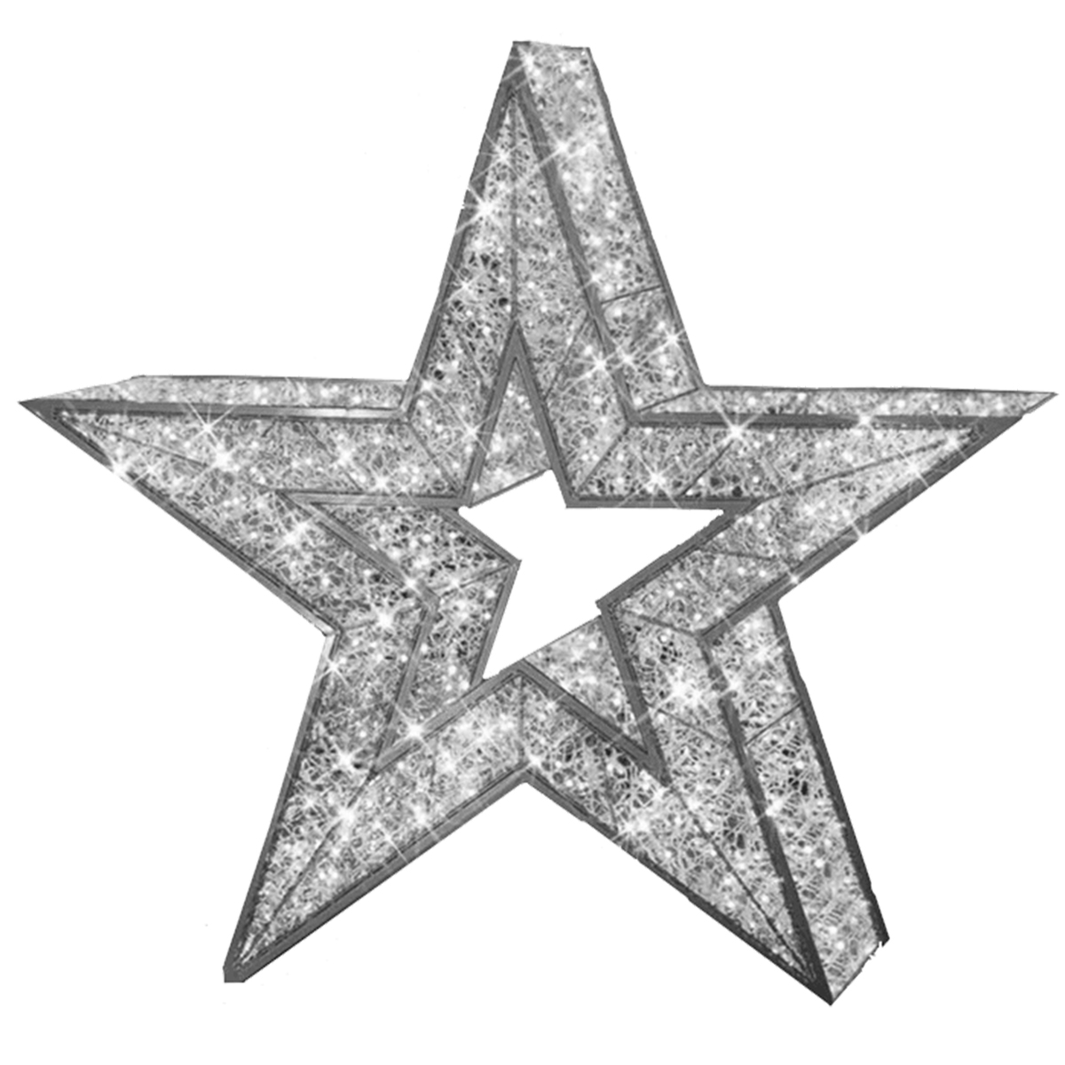 No Christmas display is complete without a decorative star, and this beautiful rendition of a three dimensional, 8-point star would make the perfect centerpiece to your home or business's Christmas decor. Ideal for shopping malls, big box stores, storefront windows, public parks, community centers, hotel lobbies, event spaces, music venues, restaurants, and boutiques, this Christmas decoration signifies the season in an aesthetic, calming way. The star measures 78 inch tall, 55 inch wide, and is made from all-aluminum construction. There are 640 LED bulbs woven throughout the transparent PVC mesh. 24 volt power supply included.