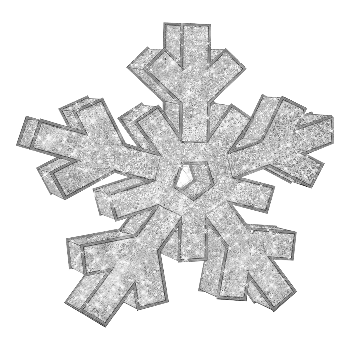 The key to creating the best Christmas display is to utilize three dimensional live forms. Such Christmas decor pieces provide the most realistic, immersive, and interactive Christmas display experience. This 118 inch by 113 inch silver snowflake is three dimensional with painted aluminum construction and transparent PVC net creating the form of the display. Throughout the display are hundreds of stunning LED lights with 10% flash. A 24 volt power supply is included.