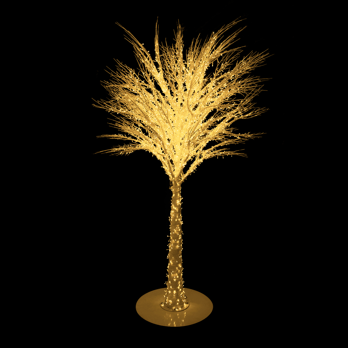 Somewhat resembling a palm tree but truly looking unlike any other tree on this Earth, this Christmas tree display has a powerful, almost SciFi appeal, bringing an entirely new take on Christmas decor to the table. Brilliant and gold and eye-catching due to the fact that there will be no other Christmas trees that look quite like this one, this tree makes a statement and would serve as an excellent decor piece for commercial properties, shopping malls, city parks, big box stores, special events, venues, courtyards, and more. Comes with a stand and everything you need to install it.