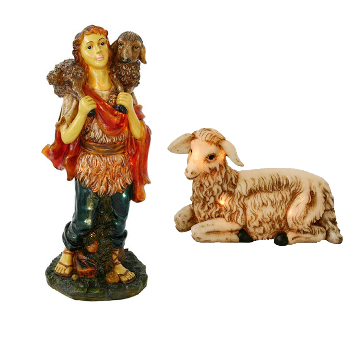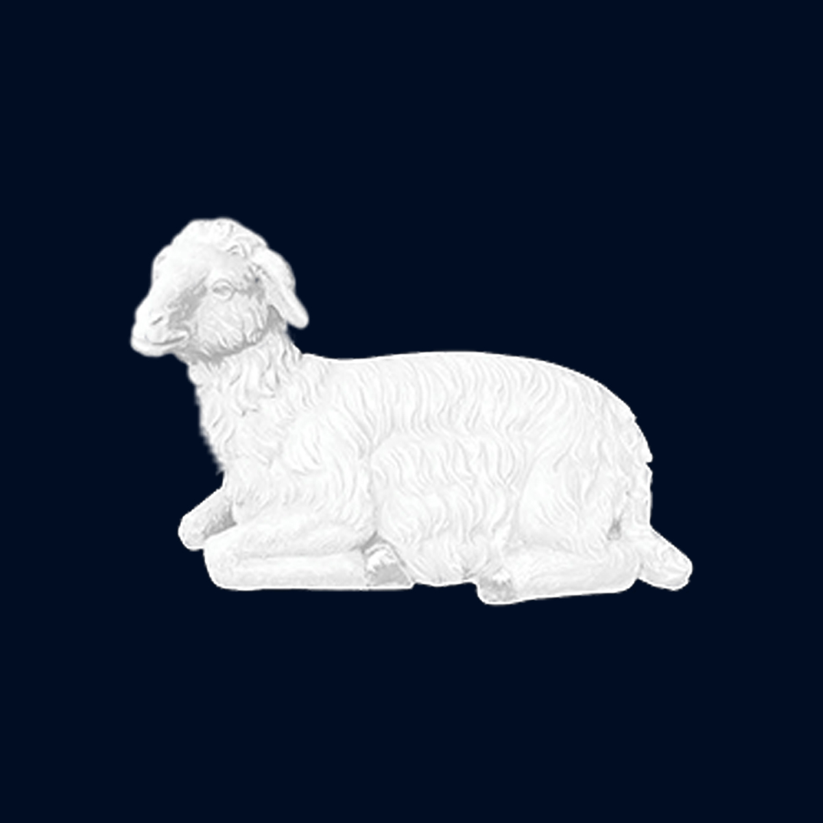 The perfect addition to a Nativity scene, this life-size lamb is made of fiberglass and white in color. Well-suited for shopping malls, big box stores, window displays, hotel lobbies, event centers, city parks, courtyards, thoroughfares, churches, commercial Christmas displays, and residential displays. The Christmas display's dimensions are  25" x 42 inch. Weight is 24 lbs.