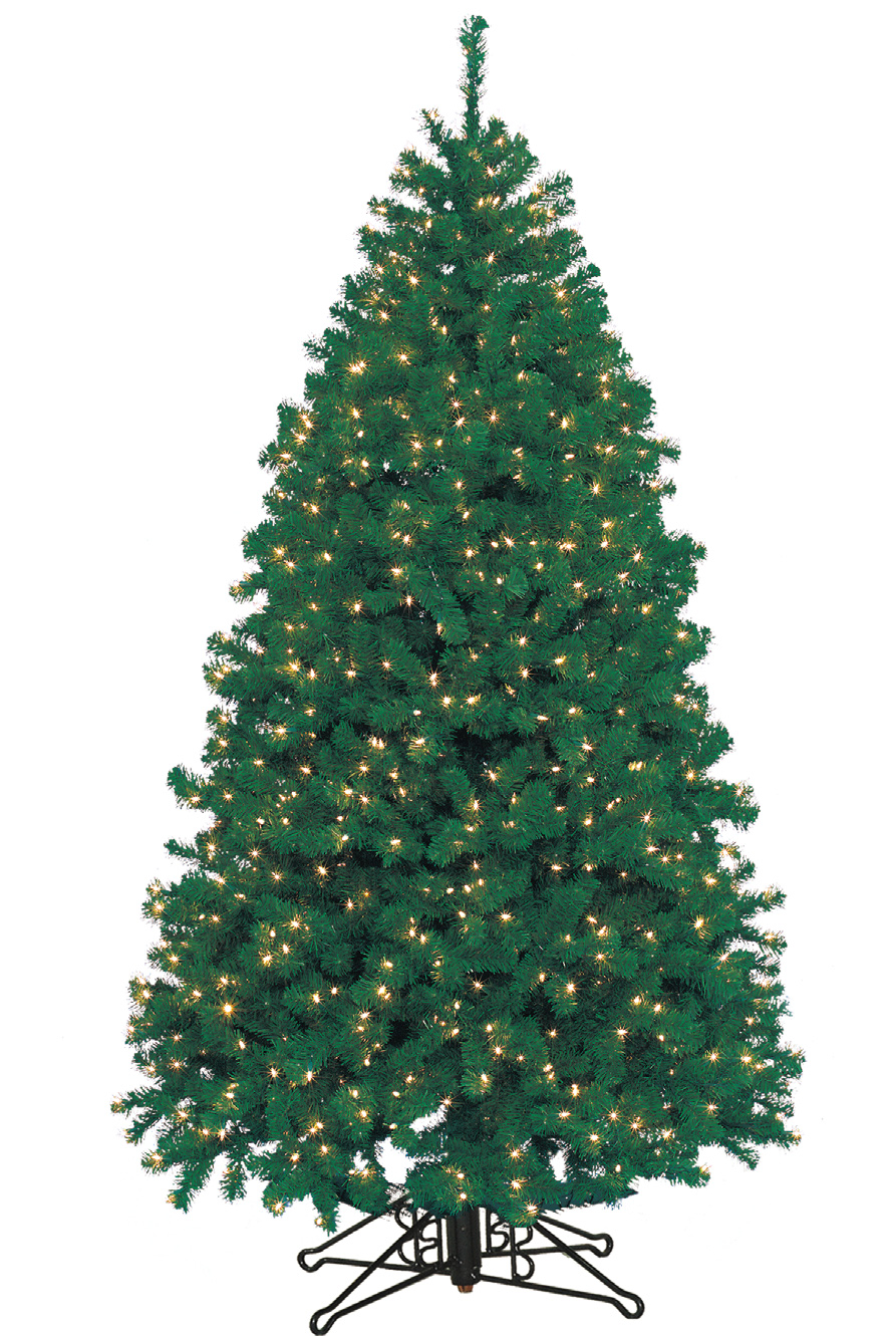 One of the most popular commercial Christmas display trees, the Alaskan Deluxe Christmas Tree is 7.5ft tall, this model of the slim-frame variety that has a girth of just 4ft. Perfect for settings where space is limited (restaurants, hotel lobbies, entryways, hallways, etc.), this tree is brightened by clear, incandescent lights and is built on a strong-frame PVC structure. The tree has a tip count of 3,223 and a light count of 600.