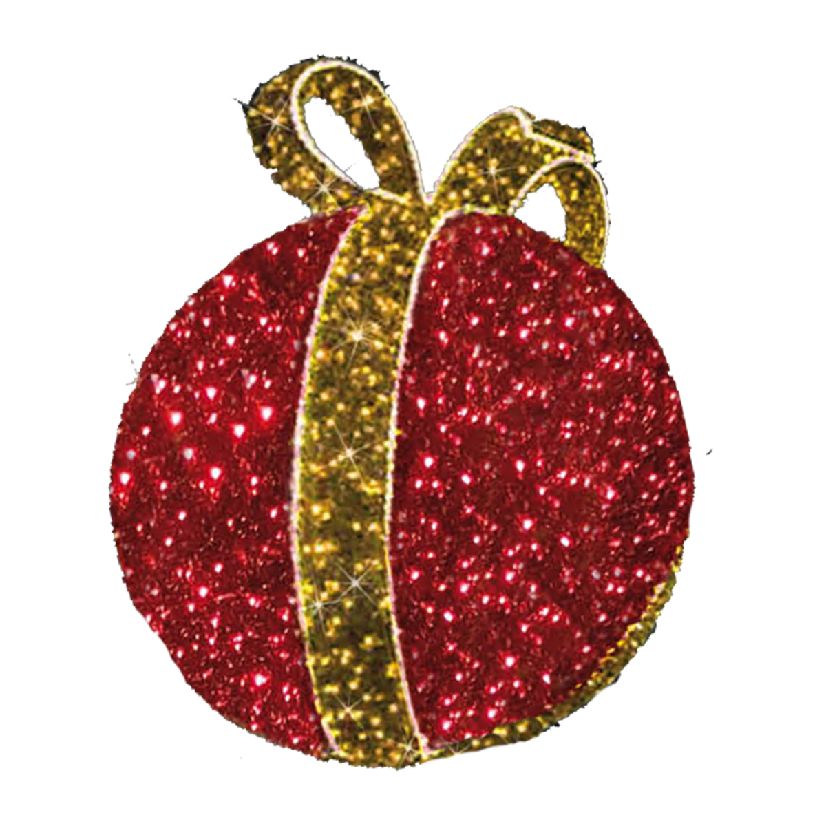 Beautiful and brilliantly lit by several hundred micro-LED bulbs, this Christmas display features a stunning red gift box with gold bow accent. Measurements are 7.9ft tall, 5.7ft wide, and 5.7ft long. 24 volts, 270 watts, LED bulbs are static with a 10% flash. Comes with power supply.