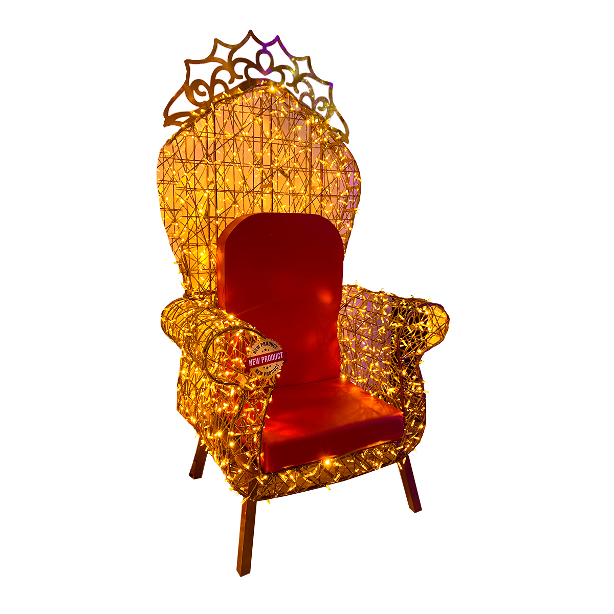 Look no further for the best Christmas Santa throne. Eye-catching and visually compelling, this throne is the perfect centerpiece for a "Meet Santa" venue in a shopping mall, event center, Christmas festival, or seasonal event. Santa throne features an actual chair and seating cushion, plus hundreds of LED lights and a power supply.